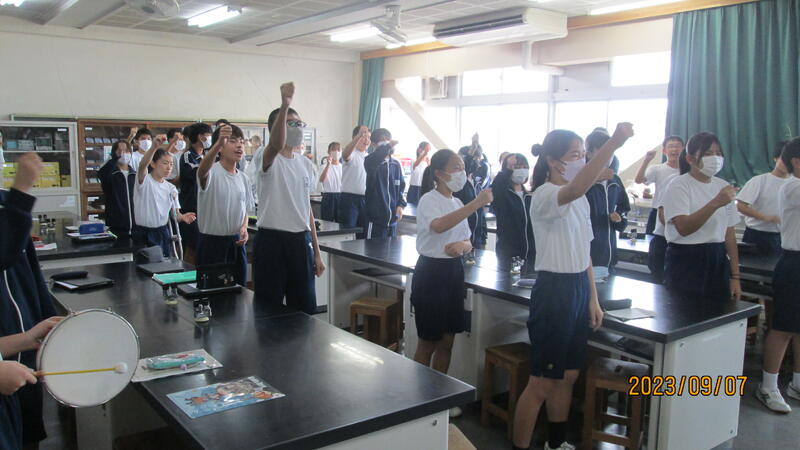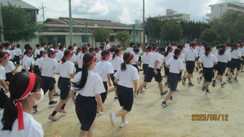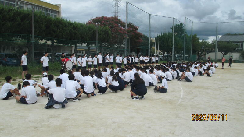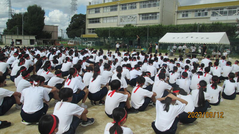 〇彼らは体育祭当日に、自分の体と声を使って仲間を鼓舞し、チームの一体感が味わえるように今から努力しています。どの中学校も数年前までは、衣装や小道具も工夫して、盛りあげようとしていました。しかし最近はコロナ禍に加え、猛暑に対する熱中症対策を優先しなければならず、時間短縮が求められていますので、シンプルですが心のこもった応援が中心になっています。