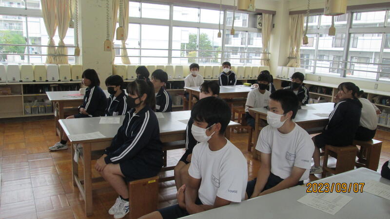 〇今回は富勢中単独で行う引き渡し訓練ではなく、小学校とも連携した訓練でした。本年度が初めての試みです。本来は教室から避難した校庭で行うのですが、熱中症対策として、各教室に保護者に来ていただき行いました。