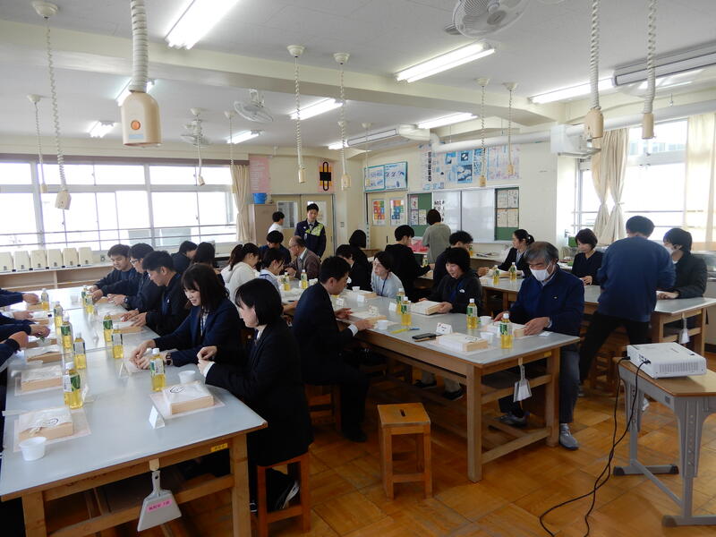 〇昼食は<ミニ歓迎会>として、被服室において注文していたお弁当をみんなで食べて、歓談しました。新しい職員には前の学校と富勢中の違いとか、自分の趣味や特技なども話してもらいました。こういう機会を通して、新しくきた職員の不安も徐々に解消し、はやく富勢中に慣れてもらいたいと思います。
