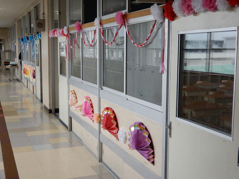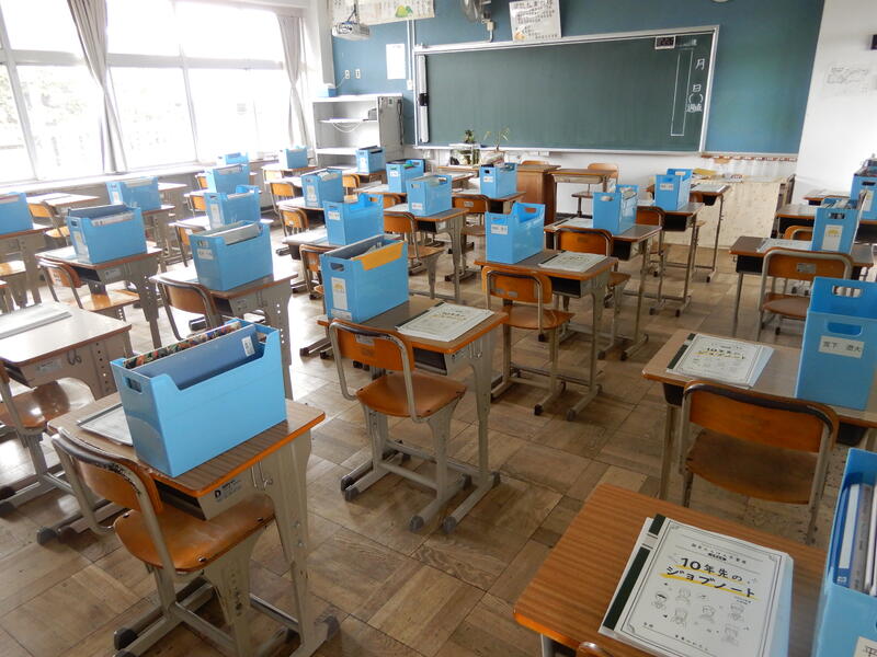 〇生徒を迎えるにあたり、教員は下駄箱やロッカー、机・椅子のシールを貼ったり、教室や廊下などの環境を整えたりしています。生徒のいない教室は、ガラ~ンとしていて、窓から差し込む光が床を照らしています。「はやく生徒が登校してこないかな」と待ち遠しく思っている教員も多いです。