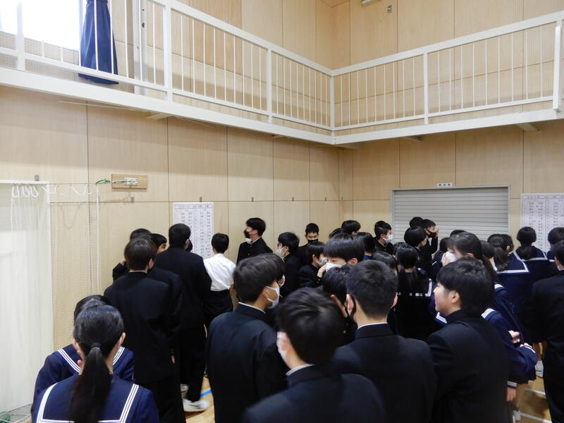 〇新3年生はクラス替えはなく、すぐに1号館2階へ引っ越しました。新2年生は体育館で新クラスの発表後、4号館へ引っ越しました。