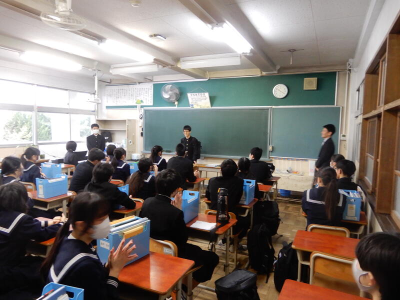 〇尚、現在はもちろん、来年度からもこれまでの「詰襟学ラン(Aタイプ)」と「セーラー服(Bタイプ)」は制服として認めていきますので、あくまでの第三の選択肢として、柏市の標準制服(Cタイプ)を考えてください。またこれからブレザー用のネクタイとリボンを業者と話し合いながら決めていきます。生徒の意見も反映できるように工夫していく予定です。