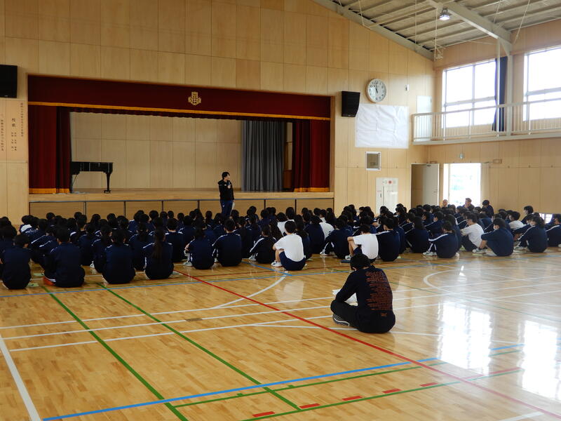 〇校長の話では、「人間は体験してそれをその後に活用できる経験にしていくことが一番大切です」「憧れの先輩を一人もって、その人をこれから超えられるように努力するとよいです」などと話しました。あたたかい雰囲気の会でした。