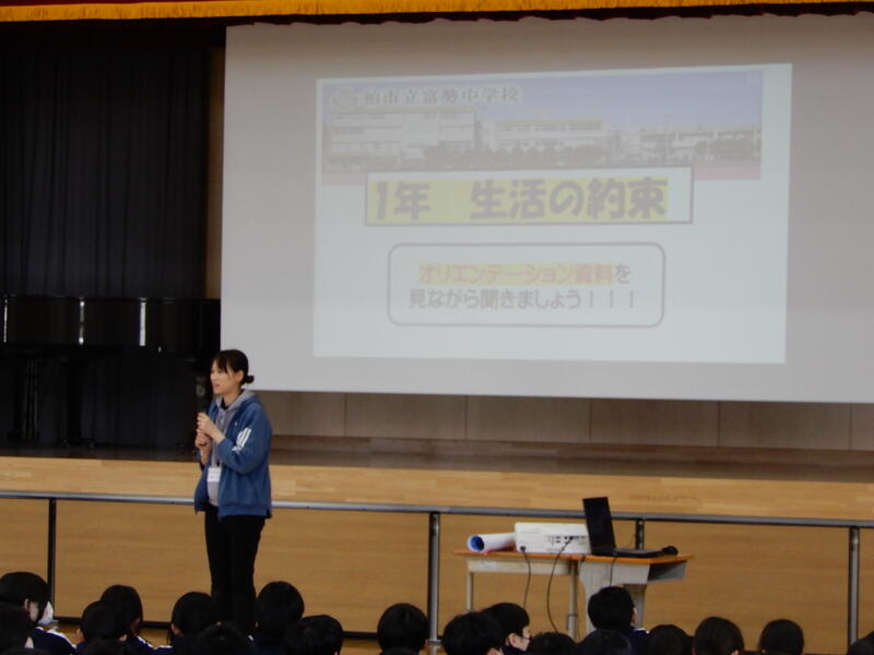 〇新入生に富勢中の諸活動を紹介し、富勢中の一員としての生活を知った上で、来週から正規日課として本格的にスタートできるように、2学年と3学年生徒が準備をしてくれました。