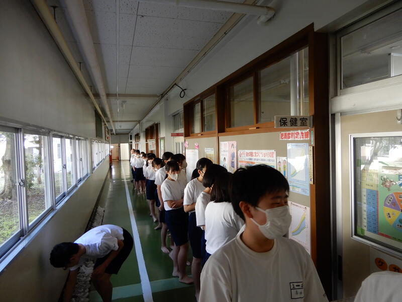 〇昨日の正午の時点では、「21~25(積極的に水分補給)」でした。ご家庭でも気温にあわせた服装やマスクの着脱、水筒の持参について、再度確認してください。のどの渇きはすでに「脱水」が始まっている証拠ですので、喉が渇く前に細目の水分補給をさせるようにします。