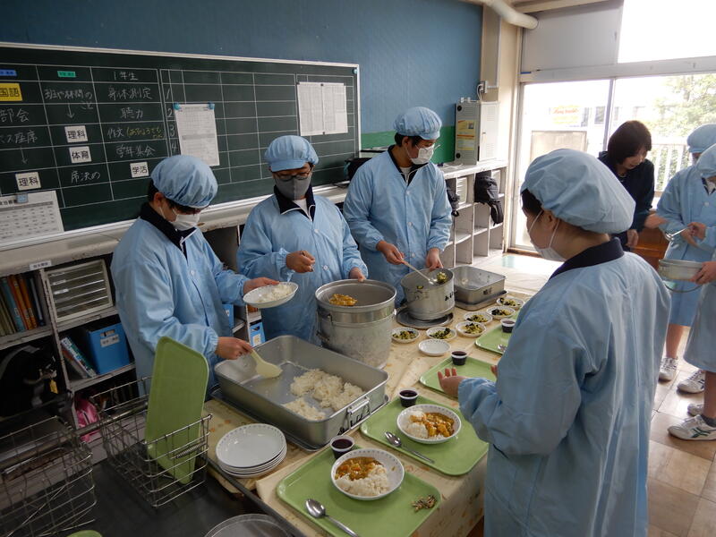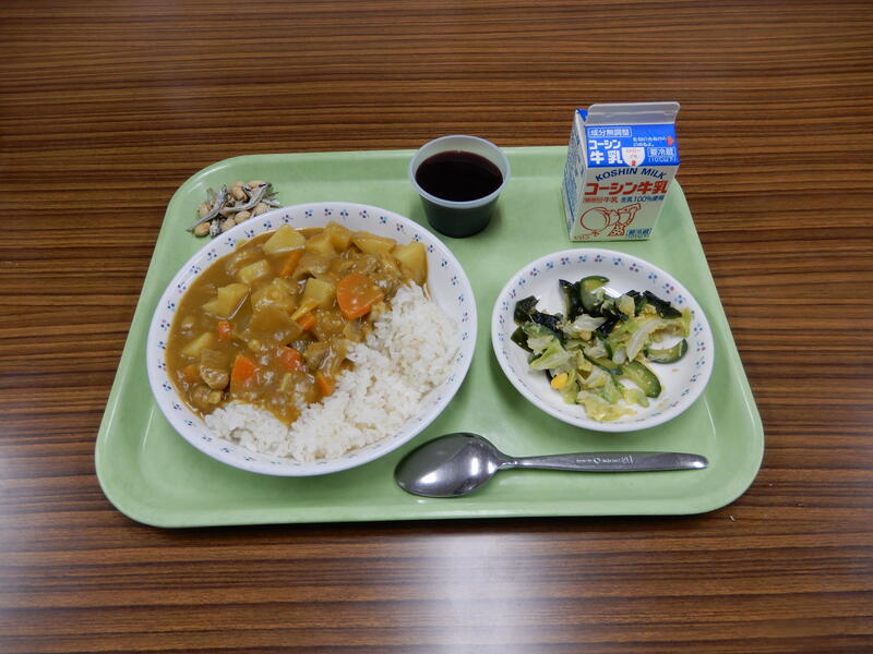 〇メニューは「牛乳、ポークカレーライス、わかめサラダ、手作りグレープゼリー、大豆小魚」でした。ご飯をどのくらいよそうかなども手探り状態で、手べ始めるまでにけっこうな時間がかかりました。明日からは少しずつペースアップしていくことでしょう。