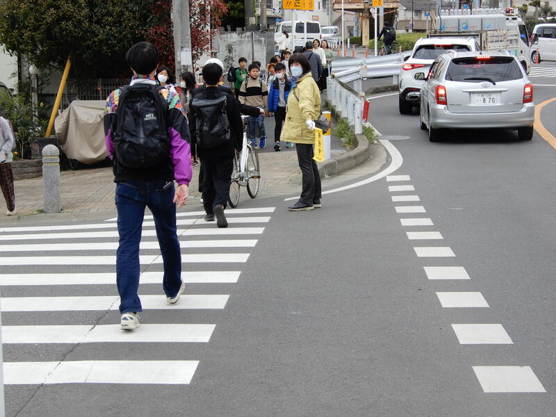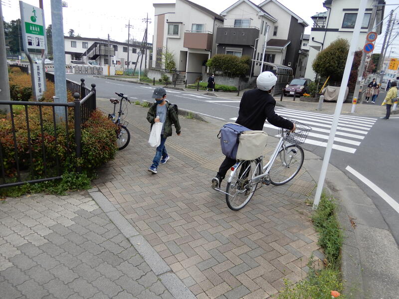 〇朝の富勢小まえの歩道は、小学生と中学生の自転車が反対方向ですれ違いますので、本校生徒は自転車を降りて押しています。もし自転車と歩行者で事故があれば、過失割合は100%自転車になりますので、保険の加入も万が一に備えて必要になってきます。