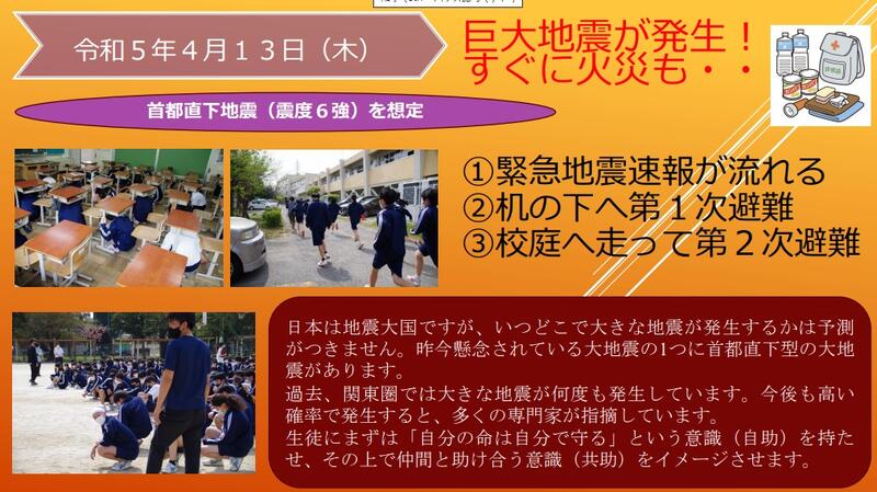 〇私は午後に市内の校長会議があるので不在にしますが、今年度初の避難訓練を行います。地震の脅威は常に頭においておかねばなりません。始業式でも私の方から2・3年生には、「今この瞬間に地震が起きたら、どう行動するか?を常に考えておきましょう。日本は地震大国です。まずは自分のいのちは自分で守るという心構えをもってください」と話しました。
