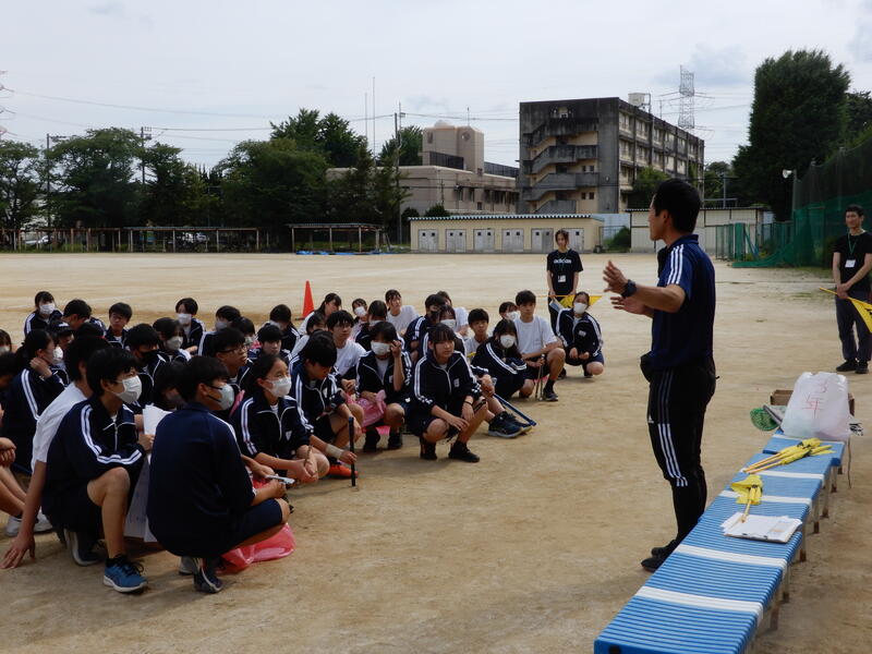 〇小学校の低学年から「水慣れ遊び・浮く・もぐる遊び」の学習をしており、中学校ではこれらの学習を受けて、泳法を身に付け、効率的に泳ぐことができるようにすることが求められています。したがって,記録の向上や競争の楽しさや喜びを味わい、泳法を身に付けることができることを目指しています。