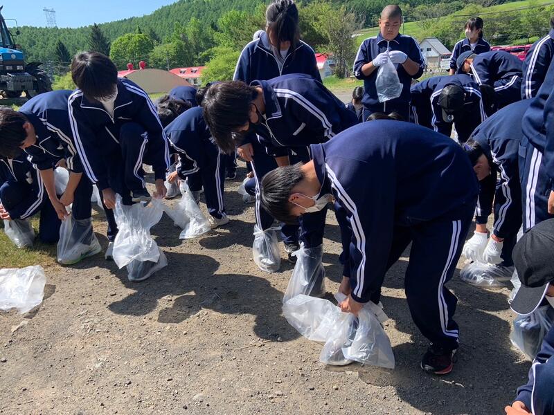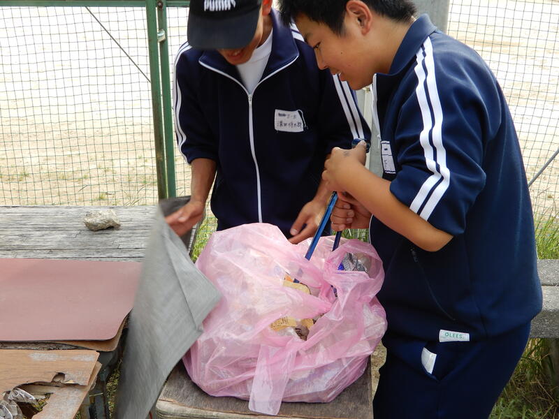 〇生徒は各クラスで5コース(約2㎞)に分かれ、安全に気を付けながら、瓶、缶、ペットボトル、不燃物などを拾い、分別しました。特に吸い殻が多いことが、生徒の印象に残ったらしいです。