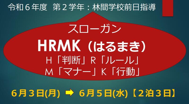 〇明日から2泊3日、2年生は長野県白樺湖方面へ林間学校に行きます。