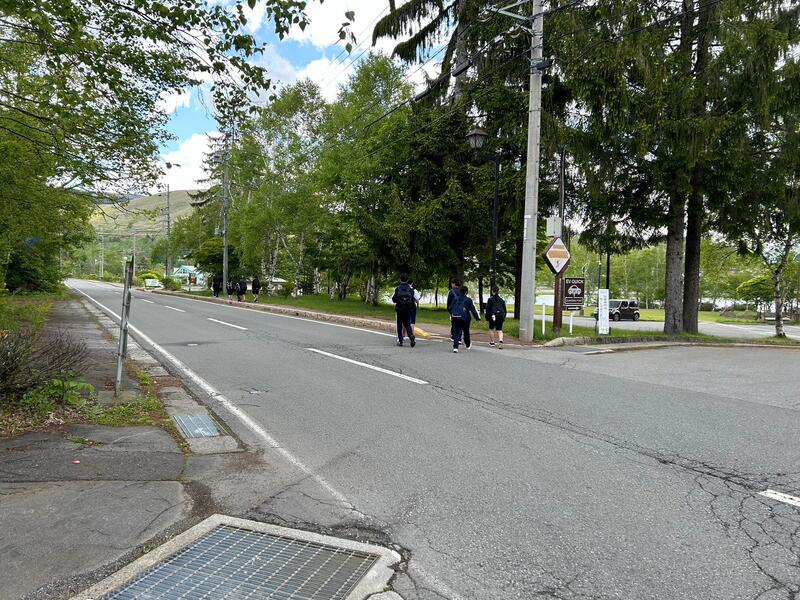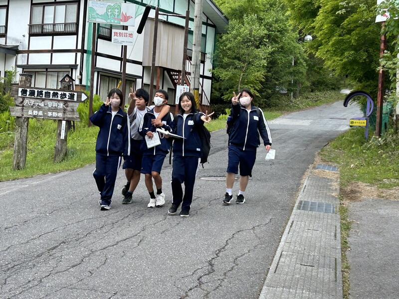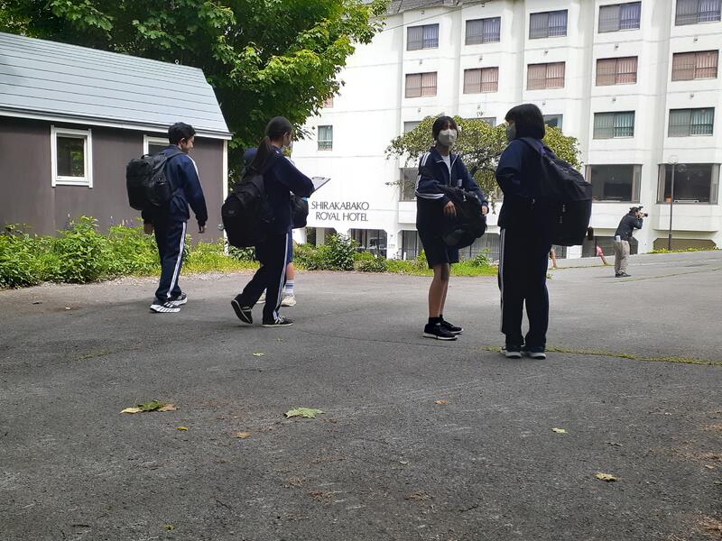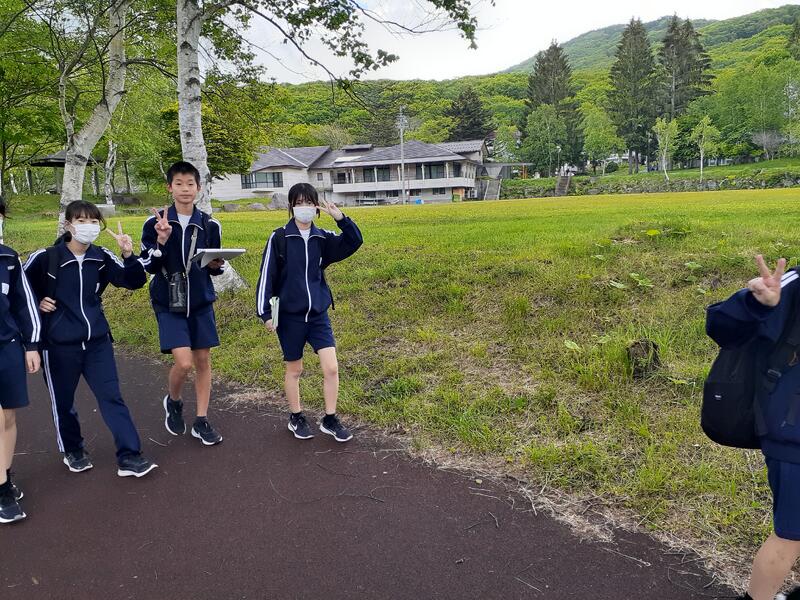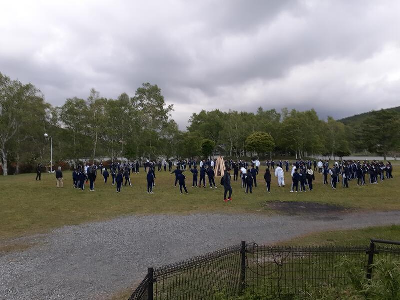 ○ホテルをスタート地点とし、白樺湖周辺を班で歩きます。地図を見ながら、みんなで途中の謎解きクイズにも答えます。体力と知力が試されます。周辺の山から、カッコウの鳴き声が響いています。高原の情緒を生徒も楽しんでいます。ウオークラリーが終わりましたら、雨が降り始めました。なんとラッキーなことでしょう。