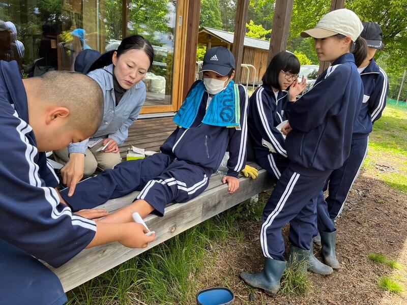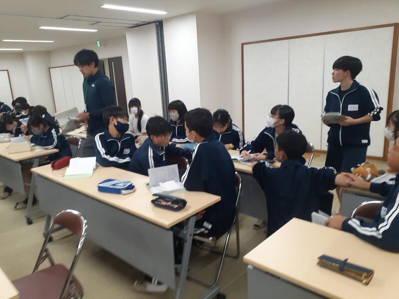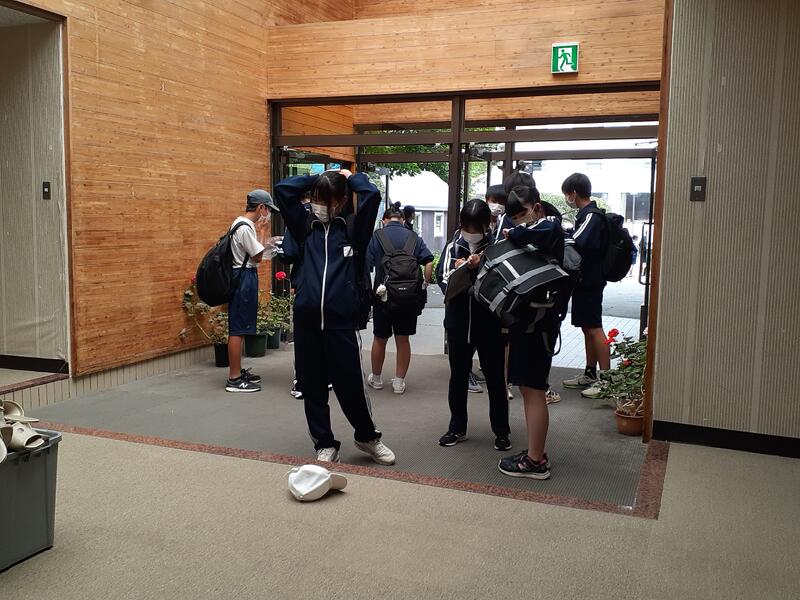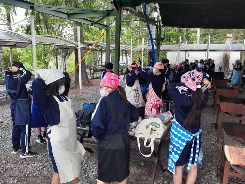 〇作業途中に小学生から「さすが先輩」と言われて、まんざらではない様子だったり、最後に担当してくれた先生に「美味しかったです。今日はありがとうございました」と自主的にお礼を言う姿に、相手の先生が「中学生だとそういうことも言えるのですね」と感激していたりと、和やかな雰囲気でした。