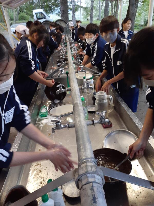 林間学校の初日が終わりました。朝の出発式で私から生徒たちには、「今から今晩の就寝時間まで、何かトラブルが起きても、自分たちで話し合いをして解決の方法を模索して下さい。そのとき、もし助けがほしければ、先生方に相談しましょう」と話しました。夜のクラス会議にすべて出席しましたが、どのクラスも係や班の話し合いが、生徒の間で活発に行われ、普段の授業と同じく、リーダーを中心に積極的な面が多く見られました。その反面、生徒の就寝時間後の23時から行った職員の打ち合わせでは、ウオークラリー、飯ごう炊さん、学年レクリエーションなどすべての場面で、どれも重大な病気ではありませんでしたが、複数の体調不良者が発生し、養護教諭が一日中対応に追われたことが、報告され、明日の課題となりました。明日は雨も一時期ふる予報なので、本日以上に安全面に気を配っていきます。須藤昌英