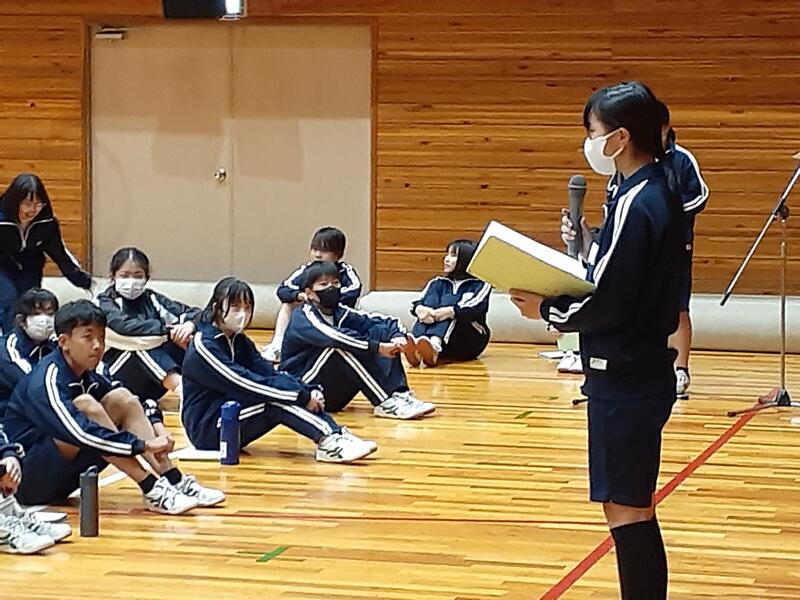 〇後半は体育館へ全員が移動し、「今年度の活動方針・計画」を議題として、学級討議で出た質問や意見・その返答の後、採決しました。また第6号議案(他学年の廊下の歩行を認めてほしい)の提案もあり採決し、可決されました。この結果を受けて、さらに詳しく検討していきます。