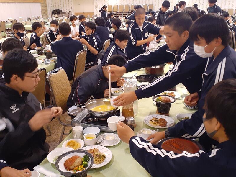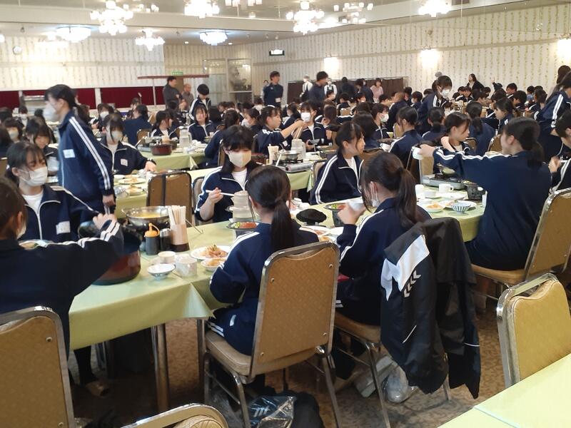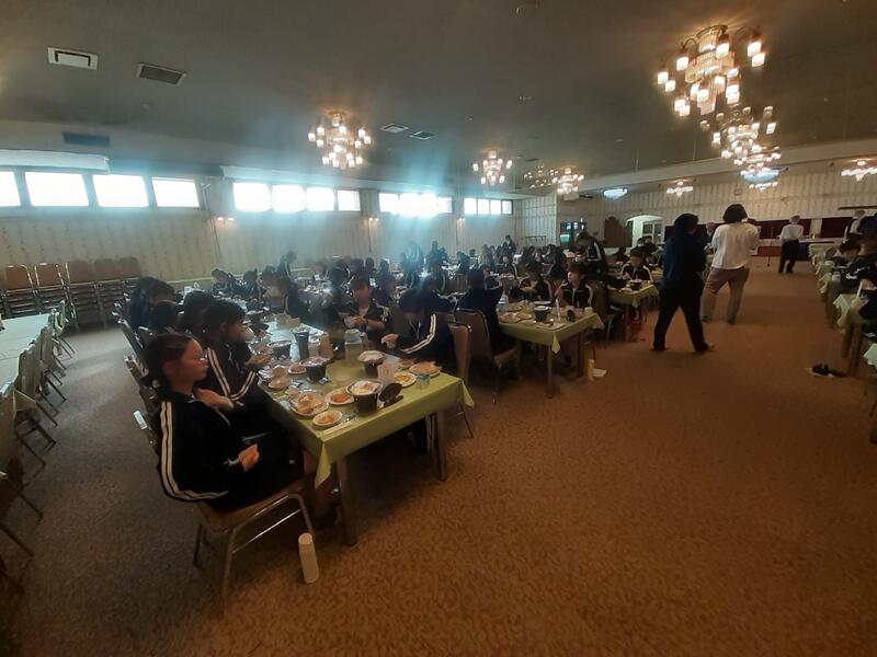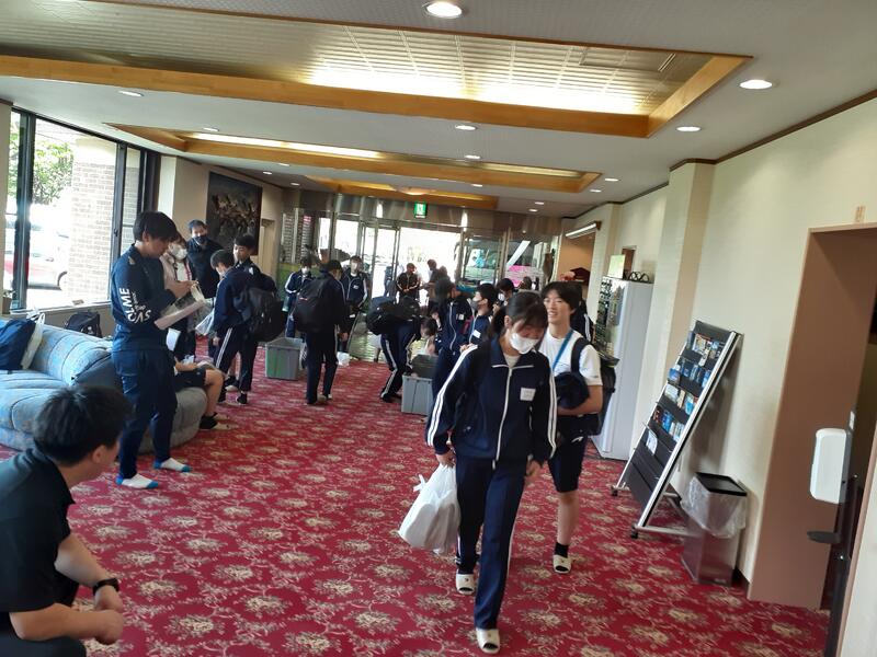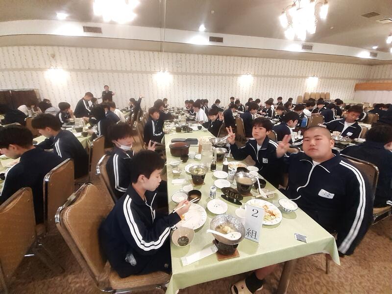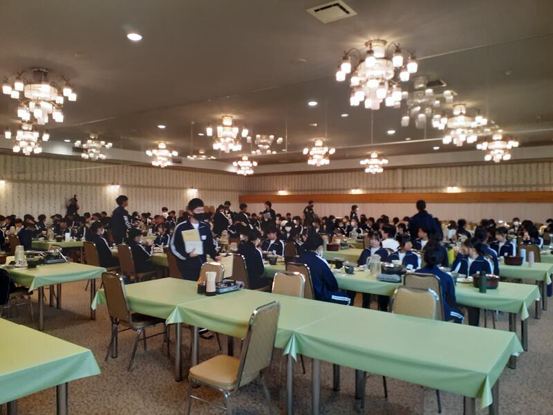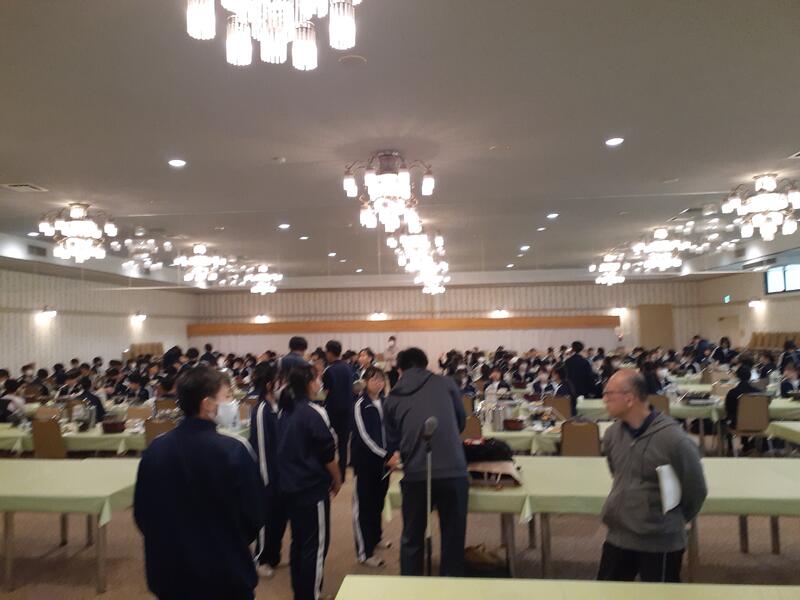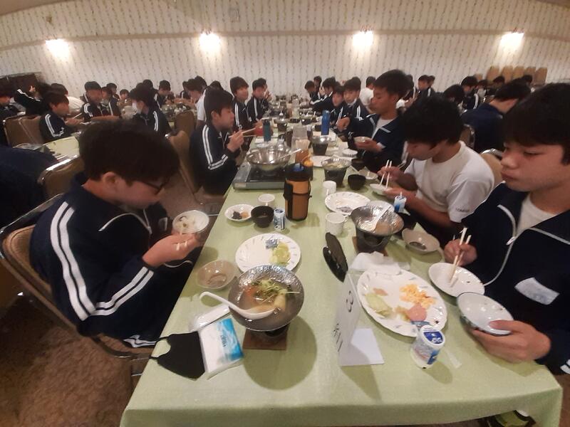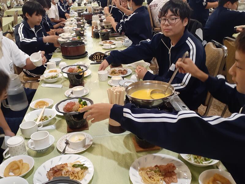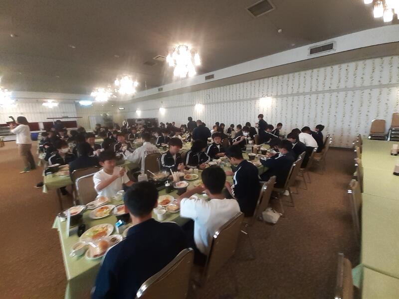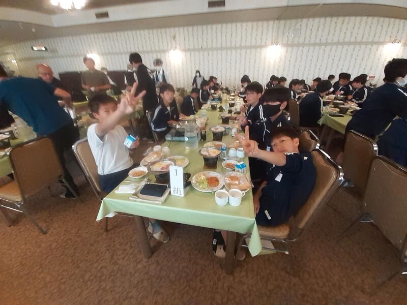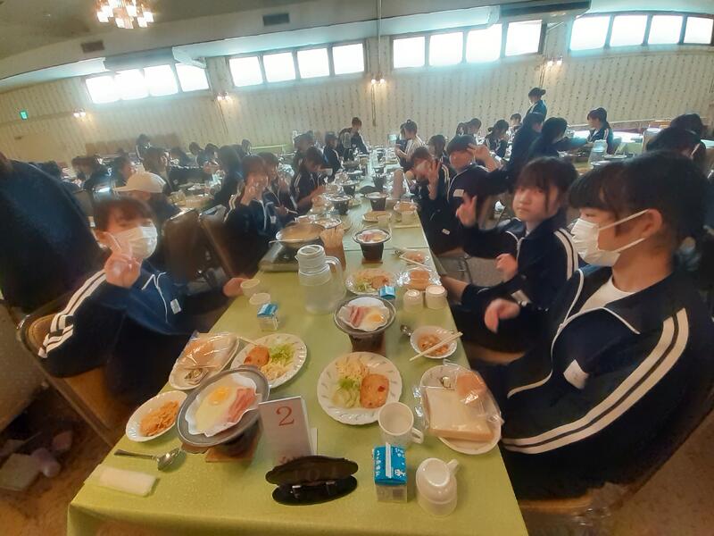 ○朝食はホールで全員でいただきます。健康観察では、寝不足からか冴えない顔も数人見かけます。ただしっかり食べないと今日をのりきれません。