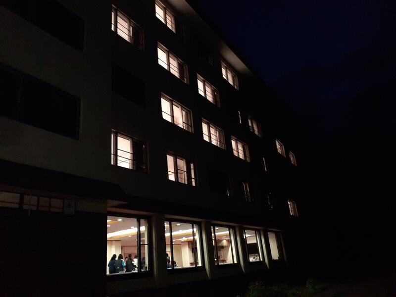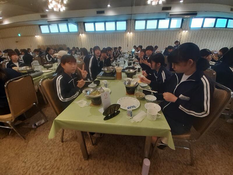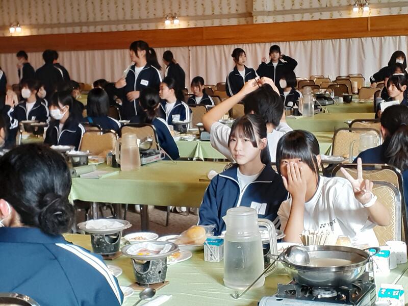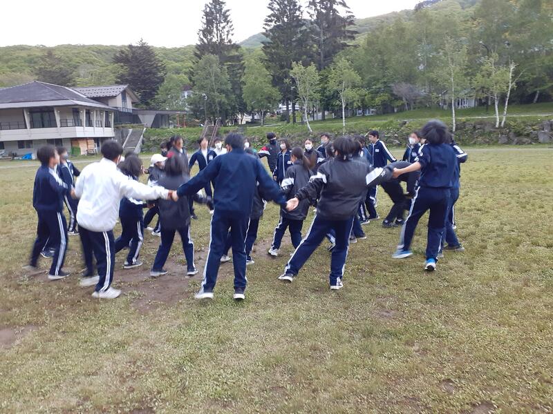 ○ホテル内に戻ると、みんな「あったかい!」と叫んでいました。さすがに高原の夜は冷えます。明日のキャンプファイアも防寒着が必要です。今夜はお腹がいっぱいとなったところで、学年レクリエーションを行います。内容は、マルバツクイズとボール運びゲームです。クラスの仲間を大きな声で応援する様子は、微笑ましいものです。ここまで動けば、疲れて夜は寝てくれるといいのですが。