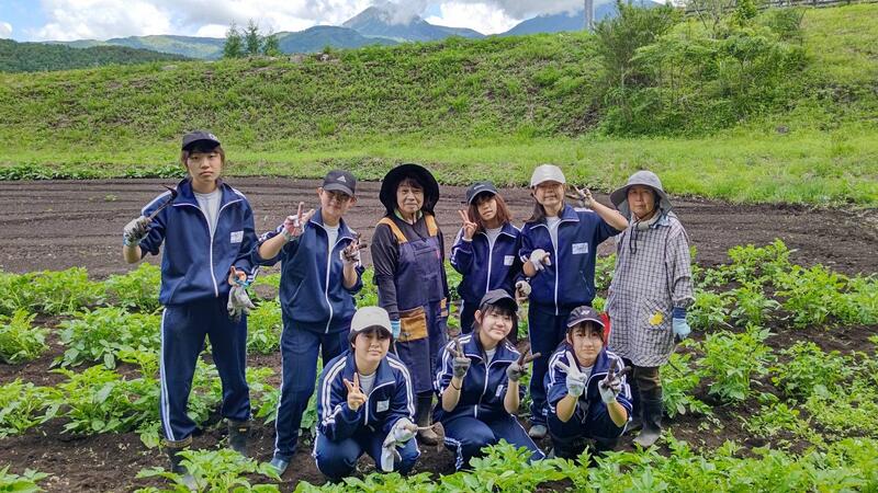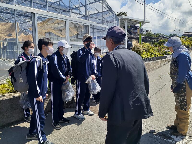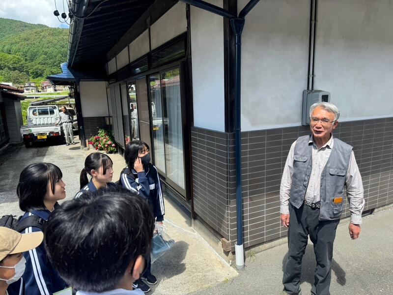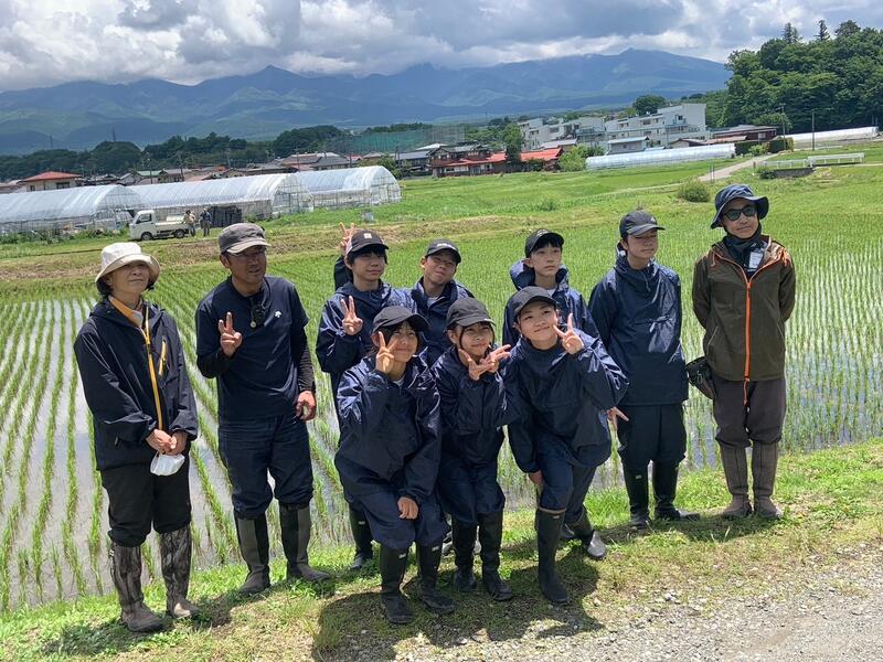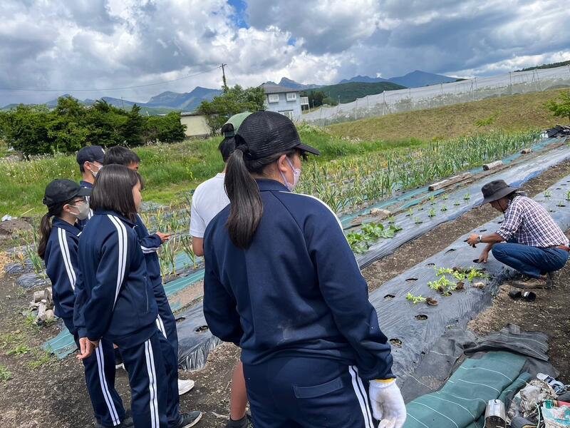 ○体験学習のはじまりです。昼食はバスでお弁当を配付しました。バスにお世話になる農家の方々が乗り込み、道案内をして下さいます。農家さんのある茅野市の説明してくれます。このあたりは、縄文の遺跡があるそうです、各班でバスを降りて農家さんへ向かいます。何を体験するかは、その農家さんにおまかせです。