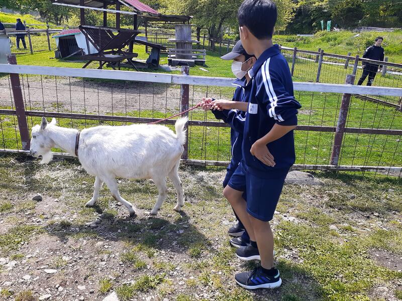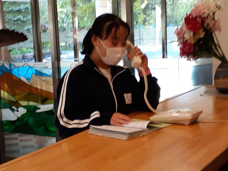 ○今朝も快晴、気温8℃。本当にこの子たちは、天気に恵まれています。松本さんの館内放送「おはようございます。」で、最終日がスタートしました。