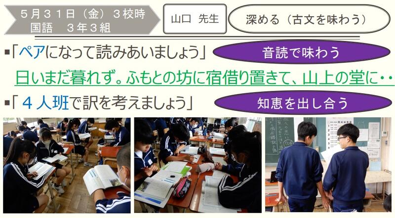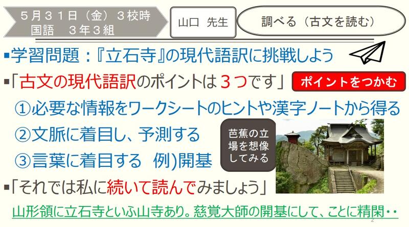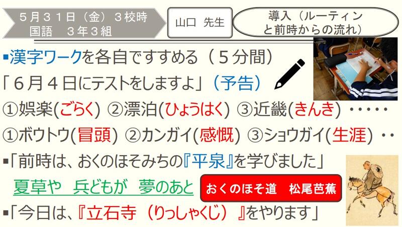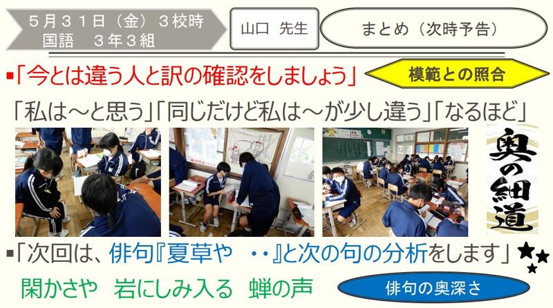 6月6日(木)3学年国語「古文(おくのほそ道)」