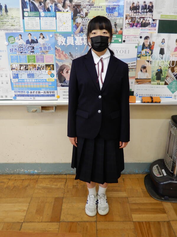 〇3年1組の松原さんに感想を尋ねると、「ブレザーは普段から着ることに慣れていないし、さらに肩幅が少し窮屈な感じで、ショルダーバッグが背負いづらいです」と教えてくれました。なるほどと思いました。その他の感想は、市教委がアンケートを求めてくると思いますので、よろしくお願いします。