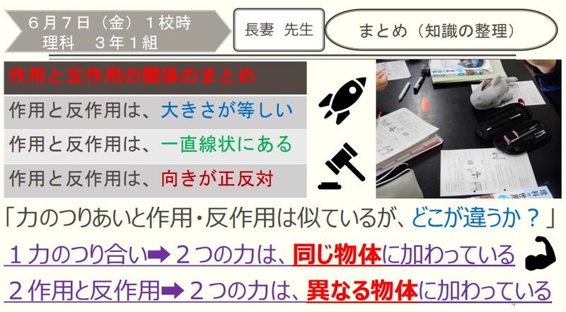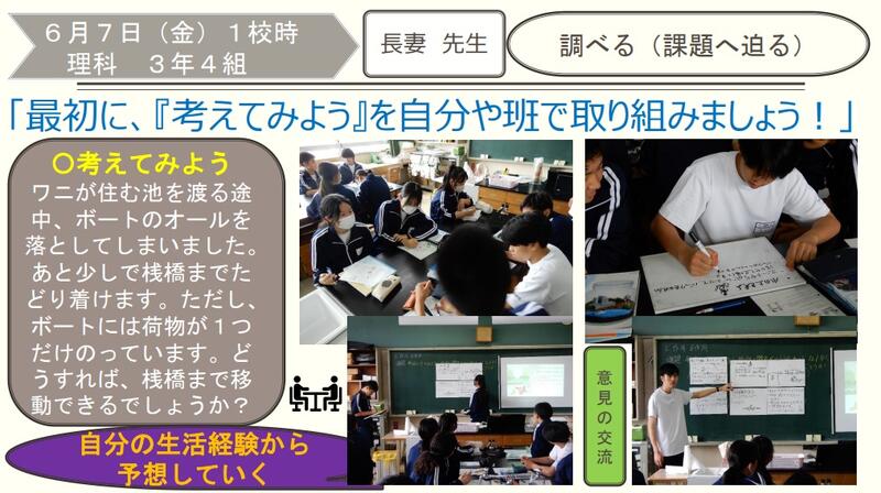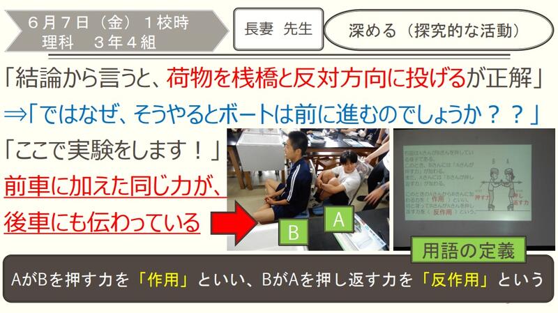 〇また今日の授業のように、「見通しをもって観察・実験を行うこと」は、観察・実験を行う際、生徒に観察・実験を何のために行うか、観察・実験ではどのような結果が予想されるかを考えられることなどであり、観察・実験を進める上で大切です。さらに広く理科の学習全般においても、生徒が見通しをもって学習を進め、学習の結果、何が獲得され、何が分かるようになったかをはっきりさせ、一連の学習を自分のものとすることができるようにすることが重要です。