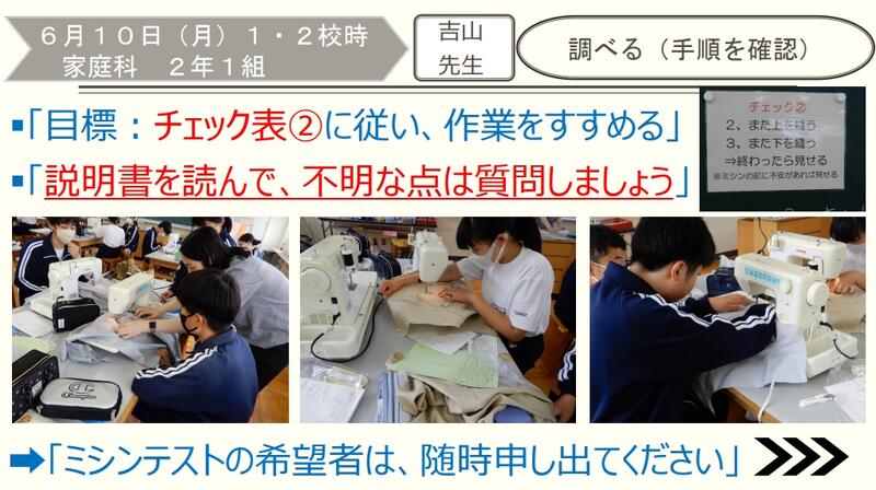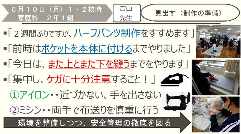 6月11日(火)2学年家庭科「ハーフパンツ制作」