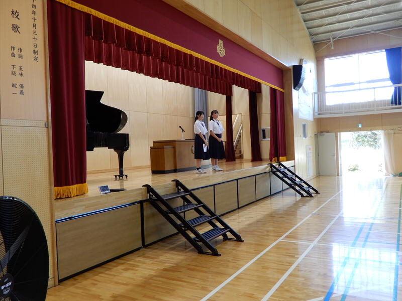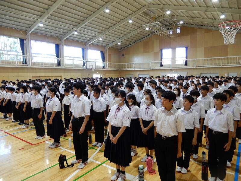 〇熱中症対策として、始業式をオンラインで実施することも検討しましたが、夏季休業中の活躍を表彰する式もあり、できるだけ全校生徒の前で表彰したあげたいこと、内容をシンプルに短時間で行うことを前提にして、体育館で行いました。