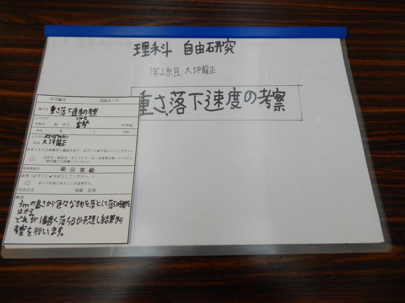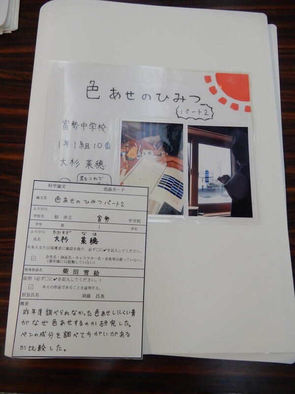 〇7日と8日の両日、さわやかちば県民プラザの回廊ギャラリーで行われた科学展では、各校から夏休みの自由研究の代表として出品された作品や論文が展示されました。本校からは6つの論文作品を出品しました。