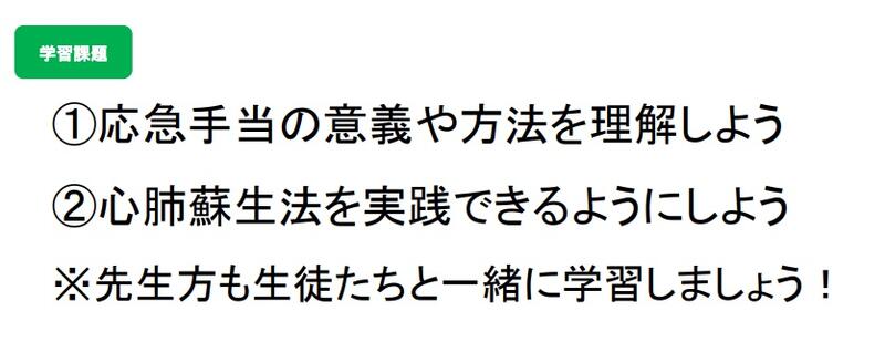 〇生徒にはそのスキルを身に付けるというよりも、救急救命が必要な場面に遭遇したときに、「何をしたら良いか?」と尻込みするのではなく、この実習を経験して、自分には何ができるかを想像できるようになってもらいたいです。