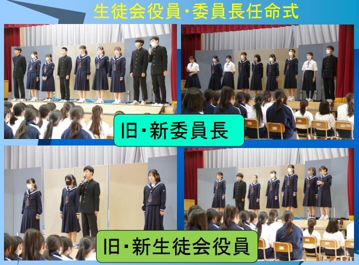 〇まずこれまで活躍してきた生徒からのあいさつがあり、続いて新たに3年生から生徒会組織を受け継いだ各リーダーを紹介する「任命式」を行いました。