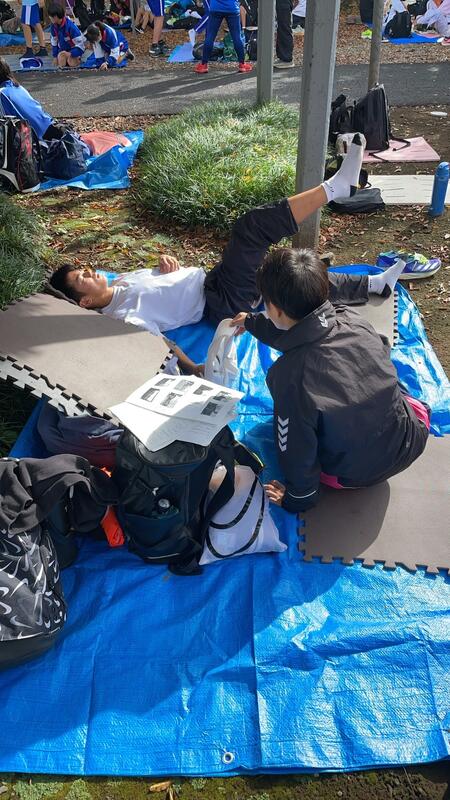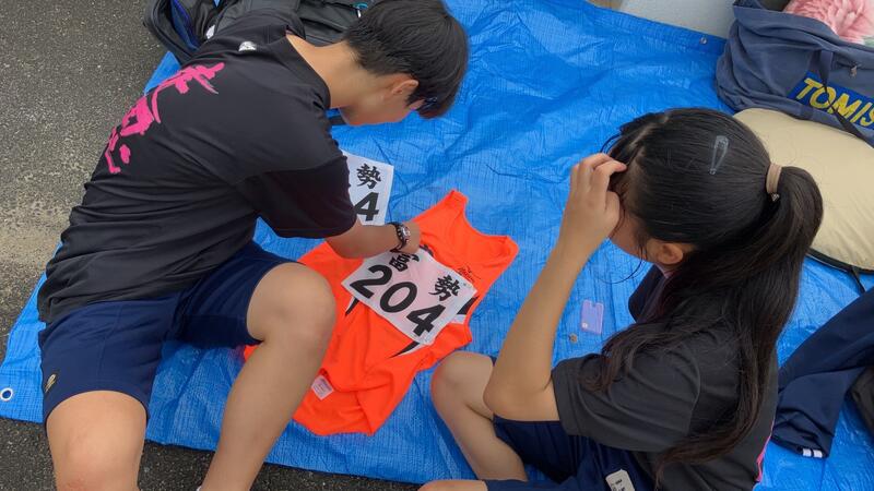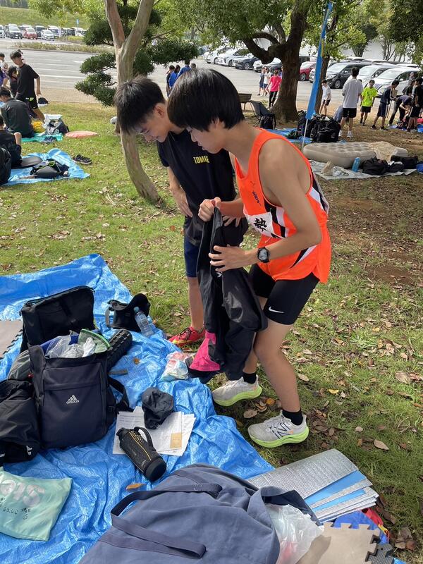 〇並行して前区の選手が通過する予定時間を常に頭に入れながら、中継所の近くでアップをしたり、体温が下がらないように毛布で身体をくるんだりと、選手はもちろん付き添いの生徒や引率の先生方も大変で、「一つのチーム」にならないと、選手をサポートできません。