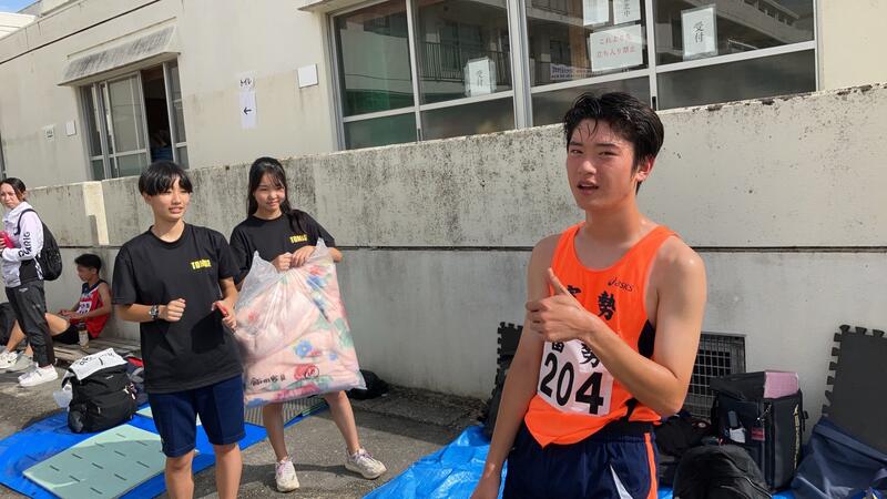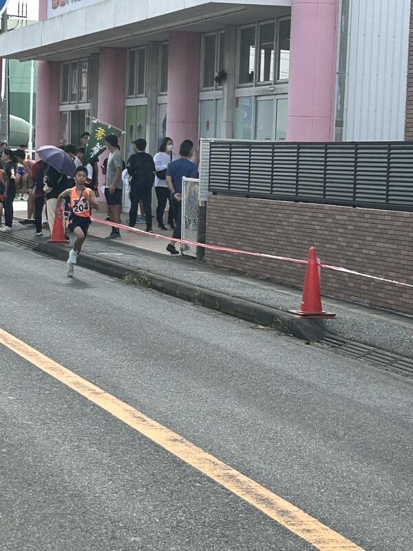 〇各中継所には、選手以外に付き添いの生徒がいて、選手をサポートしています。正月の箱根駅伝のように、沿道には多くの方々の声援があり、選手はその中を自分のベストの走りを目指して激走します。ゼッケン番号は、「204」です。