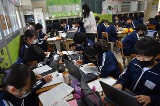 他のクラスと歌声を披露し合う交換会も行われており,良い点やもっと良くなる点を確認しています。