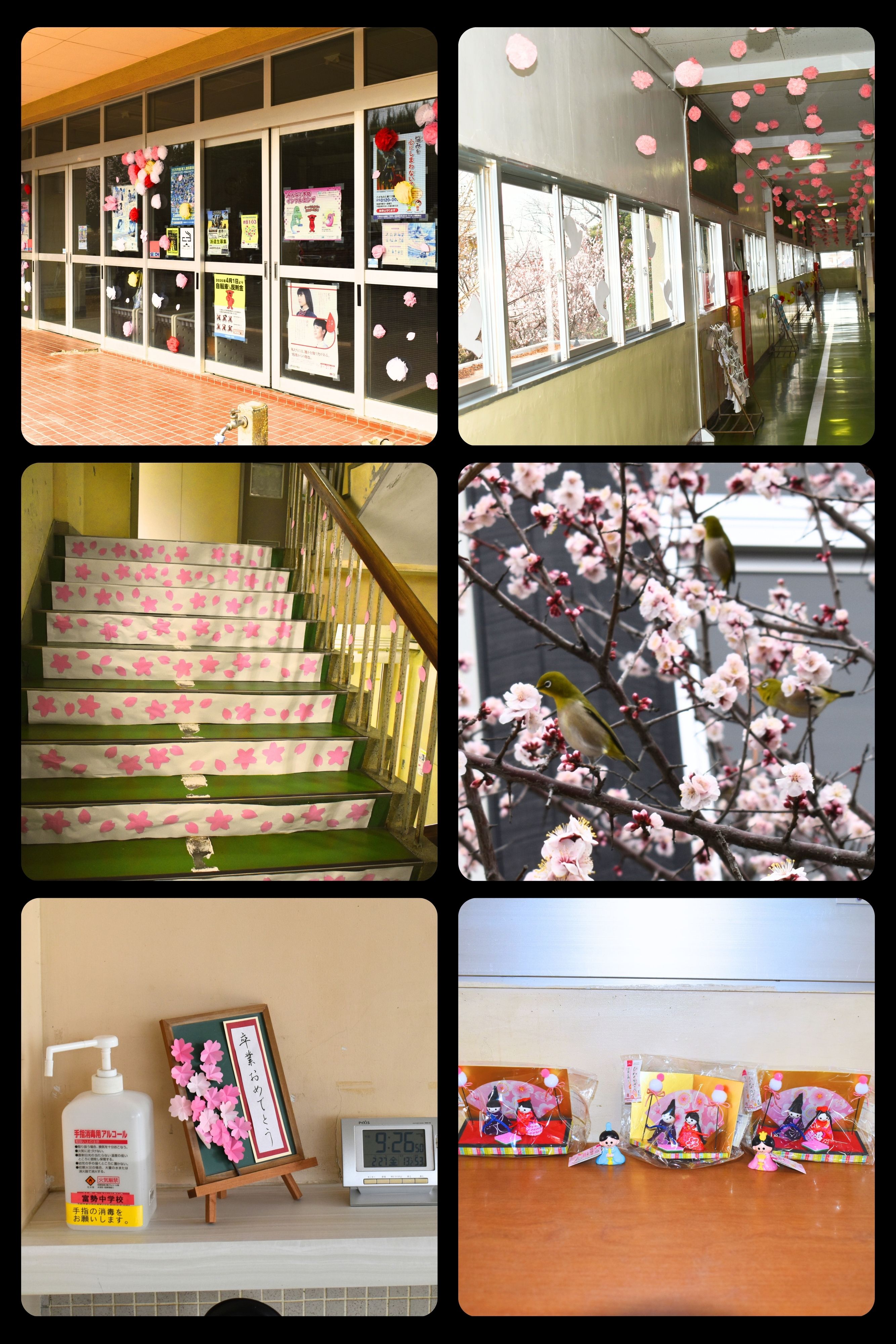 3月は卒業の季節です。校舎には3年生への感謝とお祝いの気持ちを込めた飾りが美術部によって飾り付けられています。