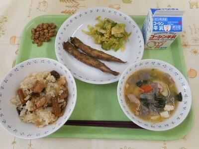 一覧へ 今日の給食 日時 2023年03月16日(木) 公開対象 給食 詳細 【今日の給食】 牛乳 山菜おこわ ししゃもの磯辺揚げ キャベツときゅうりのごま酢和え 豚汁 黒糖大豆 【食材の主な産地】 米(柏) じゃが芋(鹿児島) きゅうり(群馬) キャベツ(愛知) ごぼう(青森) 小松菜(千葉・松戸) 人参(千葉・八街) 作成者 富勢中学校 更新日時 2023-03-16 12:20:53