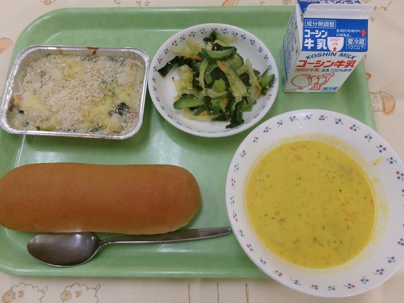 一覧へ 今日の給食 日時 2025年03月17日(月) 公開対象 給食 詳細 【今日の給食】牛乳 コッペパンほうれん草豆乳グラタンきゅうりとわかめの酢の物かぼちゃポタージュ 【食材の主な産地】ほうれん草(茨城) キャベツ(愛知)きゅうり(千葉) 玉葱(北海道)にんじん(千葉) 作成者 富勢中学校 更新日時 2025-03-20 11:21:09