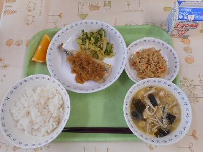 一覧へ 今日の給食 日時 2023年01月13日(金) 公開対象 給食 詳細 【今日の給食】 牛乳 ご飯 鰯のねぎソースかけ きゅうりの土佐酢あえ 切干大根の旨煮 白菜のみそ汁 ネーブルオレンジ 【食材の主な産地】 キャベツ(愛知) きゅうり(宮崎) しょうが(高知) 人参(千葉・八街) 白菜(茨城) 作成者 富勢中学校 更新日時 2023-01-13 12:17:10