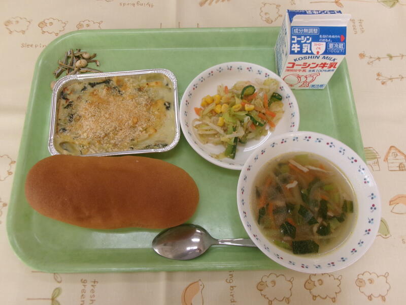 一覧へ 今日の給食 日時 2026年02月05日(木) 公開対象 給食 詳細 【今日の給食】牛乳コッペパンほうれん草のグラタンゆで野菜のごまサラダポテトスープ大豆小魚 作成者 富勢中学校 更新日時 2026-02-09 13:28:40