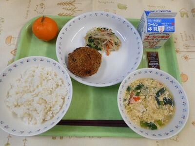 一覧へ 今日の給食 日時 2023年01月17日(火) 公開対象 給食 詳細 【今日の給食】 牛乳 ご飯 おから入りコロッケ もやしのポン酢和え かきたま汁 ポンカン 【食材の主な産地】 米(柏) じゃが芋(北海道) 小松菜(千葉・柏) 玉葱(北海道) 人参(千葉・富里) ほうれん草(千葉・松戸) もやし(栃木) ぽんかん(愛媛) 作成者 富勢中学校 更新日時 2023-01-20 12:29:04