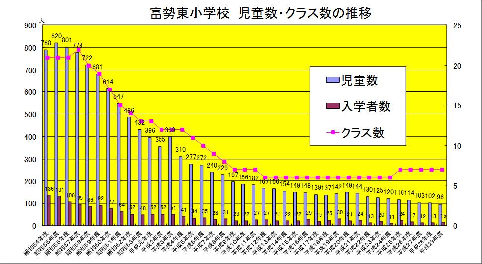 | 昭和 | 54年度 | 富勢小から分離して富勢東小開校 第1回入学式を屋上で挙行 第1回卒業式挙行 |