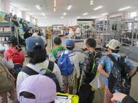 昔使っていた農機具の画像や郷土資料室にある実物を見ながら解説していただいたり、実際に動かしたりしました。