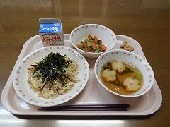 メインはちらし寿司で、鮭フレークやしいたけ、れんこん等も入っています。