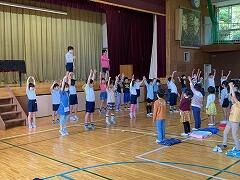 5年生と6年生が体育館で一緒にフォークダンスをしていました。
