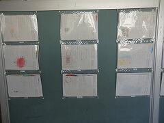 1年生の教室廊下に作品が掲示されていました。