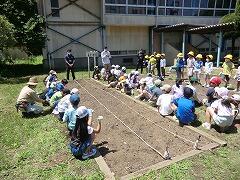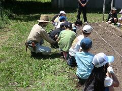 あけぼの山農業公園スタッフさんが、ひまわり種まきの指導に来てくださいました。