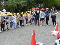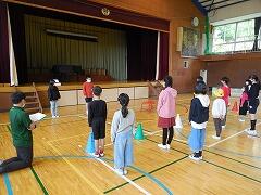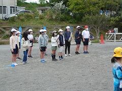 隊形移動の時には高学年から「走るよー」や「座ってー」など低学年に指示している場面が見られました。