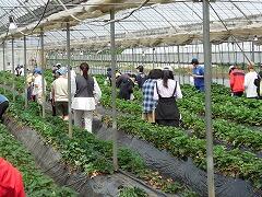 各自ビニル袋に食べられるだけのいちごを取っていました。