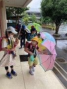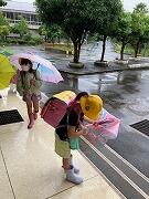 傘は昇降口前で、水を払い、丸くたたんで傘立てに入れます。