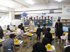 式終了後、担任に連れられ、初めて1年生教室に入りました。